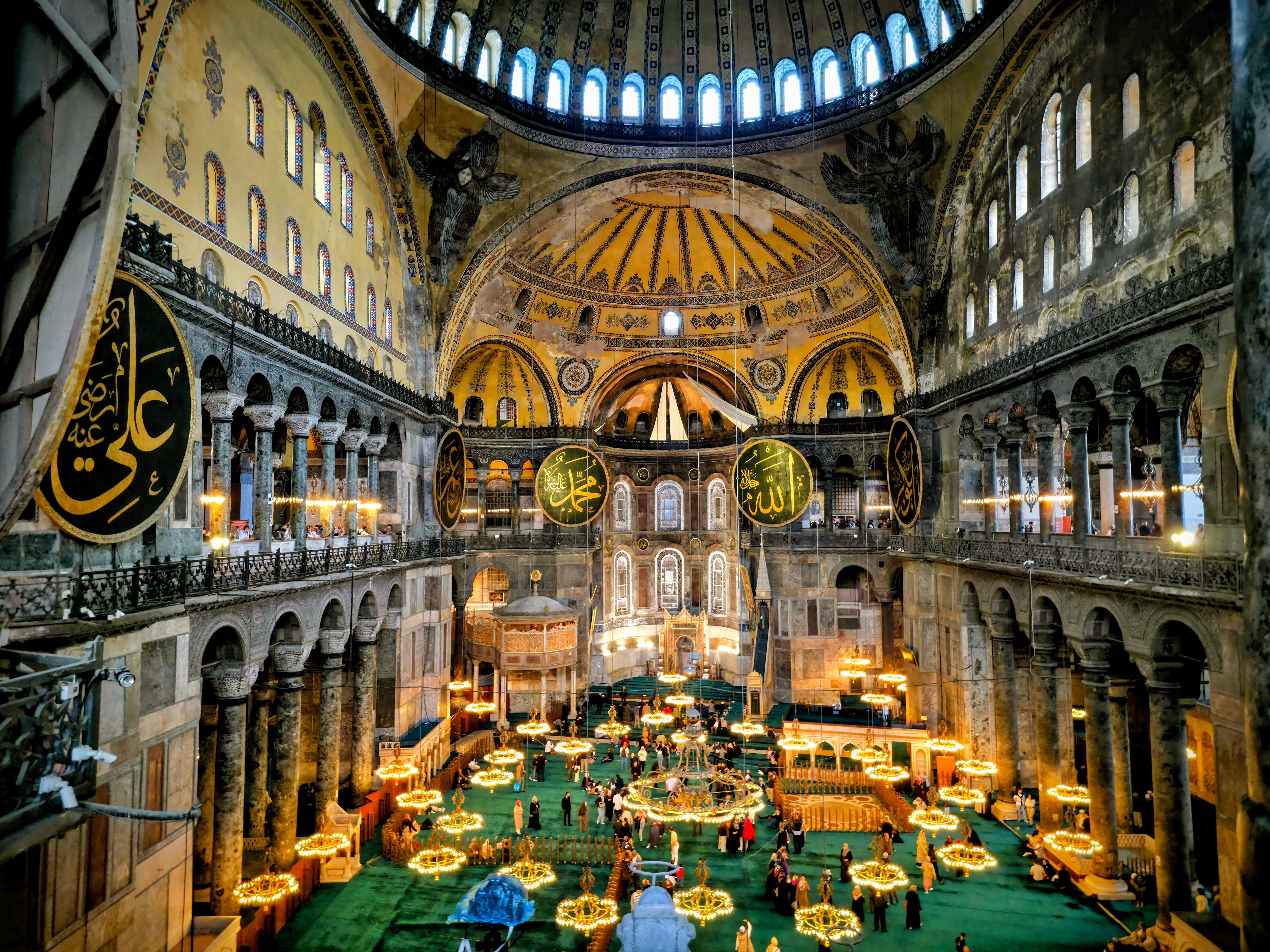 The Hagia Sophia (the name means Holy Wisdom in Greek) was the greatest Christian church for many long centuries. Finished in 537 under the direction of the Emperor Justinian, it contained the largest interior space in the world, and employed the first full dome of its type. It was the largest church in the world for almost a thousand years, and is now a UNESCO World Heritage Site.