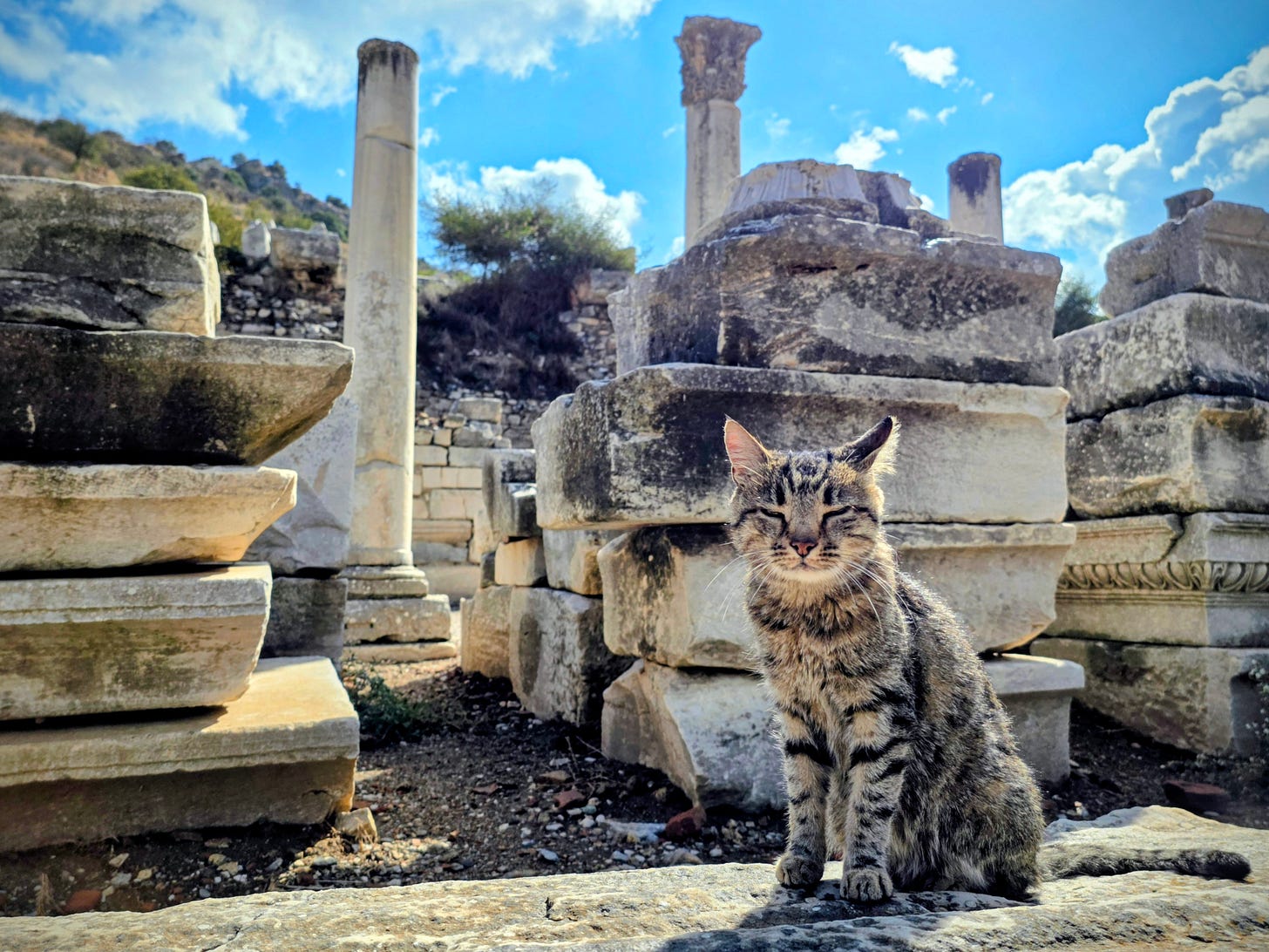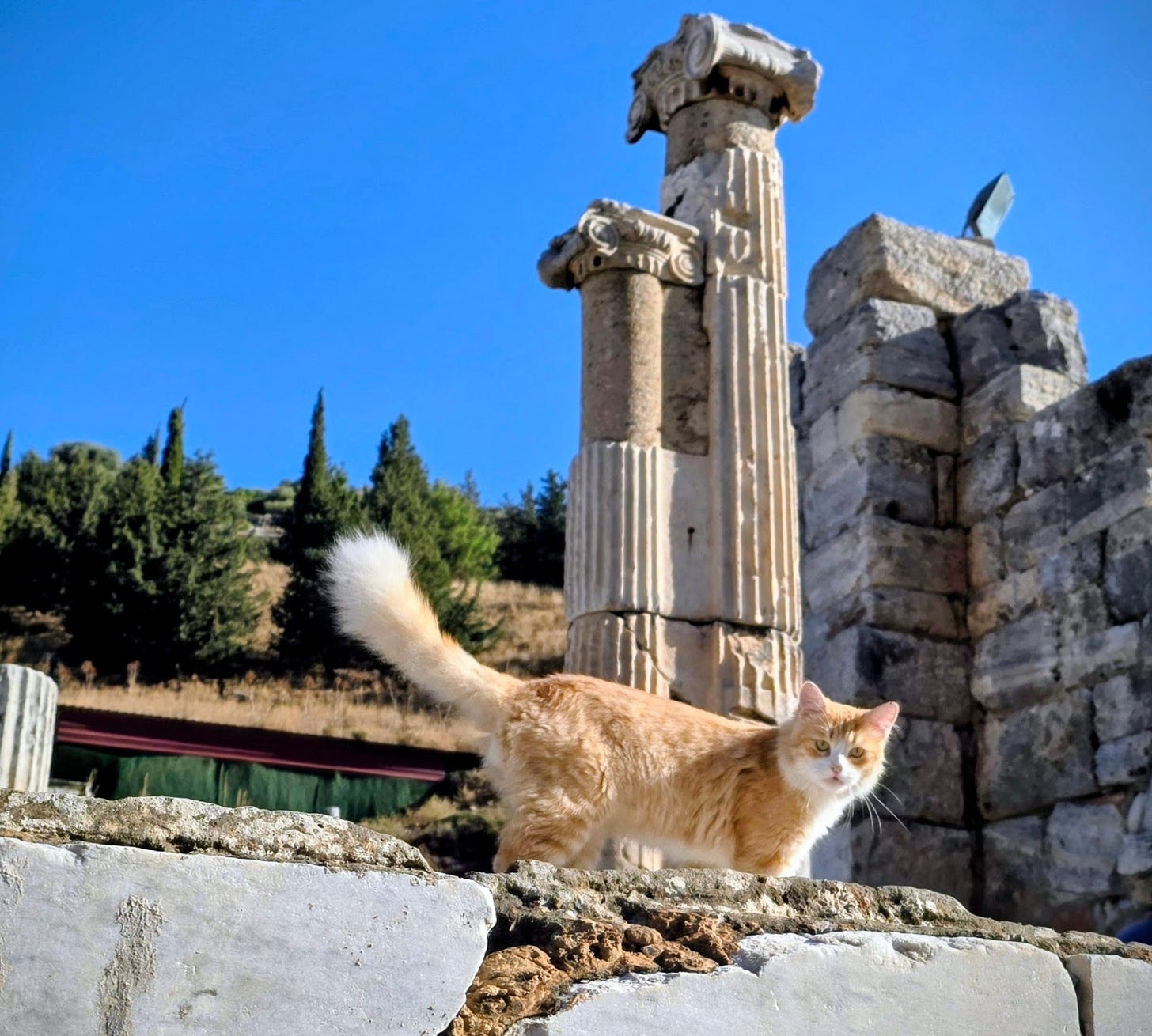I wished I could communicate to these furry friends that they were privileged to live in a UNESCO world heritage site, where people come from all over the world and pay $50 a day to visit. And not only that, the Apostle Paul spent two years here, and (kinda) inspired a riot by leading so many folk to abandon idol worship. But I don’t speak cat, and even if I did I don’t think they would be impressed. History, art and architecture seem beyond, our perhaps beneath, their notice.