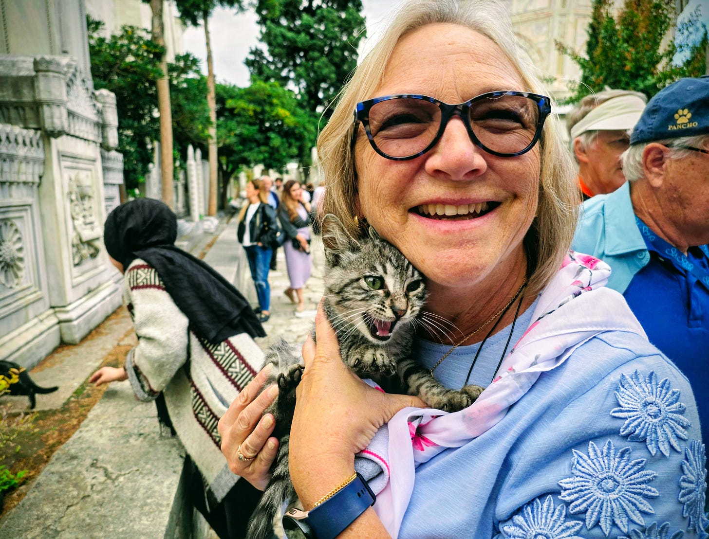 I was intrigued to see the contrast in Istanbul between the chill cats and the bustling tourists or busy workers. The felines lounge serenely as throngs of people scurry around them.